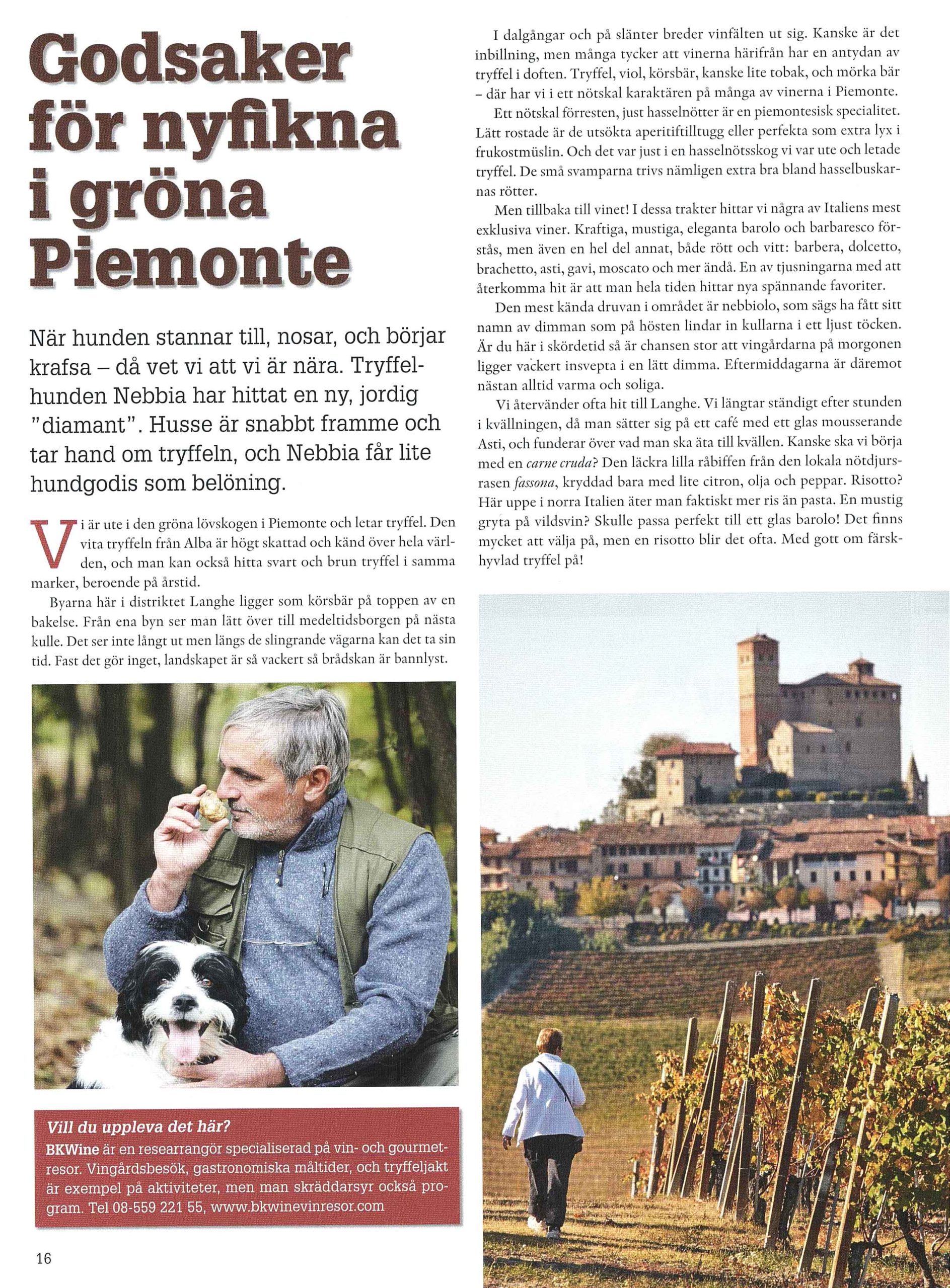 One of the trips that they feature in the magazine is BKWine’s wine and food tour to Piedmont, a tour that takes place in the autumn when it is also the season for truffles.